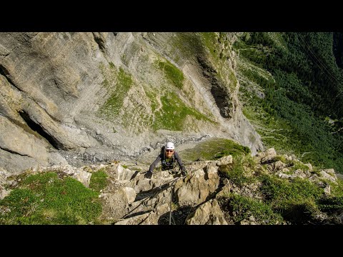 Früh am Samstag geht es los. Um 7.45 Uhr starten wir den Aufstieg, um 9 Uhr befinden wir uns am Einstieg des Steigs und legen Gurte, Helme und Klettersteigsets an. Der Steig quert zunächst eine längere Zeit, bevor es steiler und luftiger wird, endlich klettern! Doch wir sind längst nicht die einzigen, die heute diesen Klettersteig machen wollen und es entstehen ab und zu kleinere Wartepausen. Naja, dann nutzen wir die Pausen eben für Bilder und Videos 😉. Der Steig ist mit insgesamt 216 Meter Leitern und über 2000 Meter Stahlkabel versehen. Als Erlebnis belohnt er mit dem eindrucksvollen Panorama der Walliser Alpen. Ein tolles Highlight ist die ca. 100 Meter lange natürliche Höhle, die durchquert wird und in welcher im Winter die Lawinen ins Tal donnern. Hier kommt auch ein Wasserfall runter und die leichtere Variante des Steigs führt darunter hindurch. Danach geht es steil weiter, das Wetter spielt super mit und wir bekommen viel Sonne ab. Kurz vor dem Gipfel erwartet uns die letzte lange Leiter, dann stehen wir um ca. 16 Uhr auf dem Gipfel des Daubenhorns.